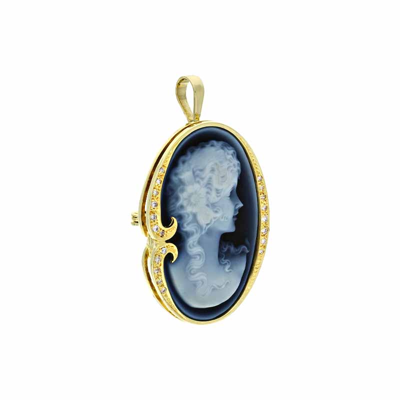 Faszinierender Anhänger aus 585er Gelbgold mit Gemme/Lagenstein und funkelnden Brillanten.