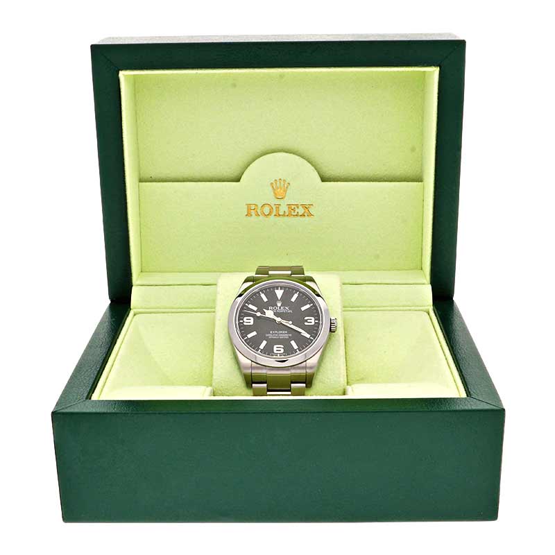 Armbanduhr in Original ROLEX Box mit Uhrenkissen und Umverpackung. Mehrsprachige Bedienungsanleitung, Lederetui mit Internationaler ROLEX Garantiekarte, Erstkauf 07/2014 in Deutschland.