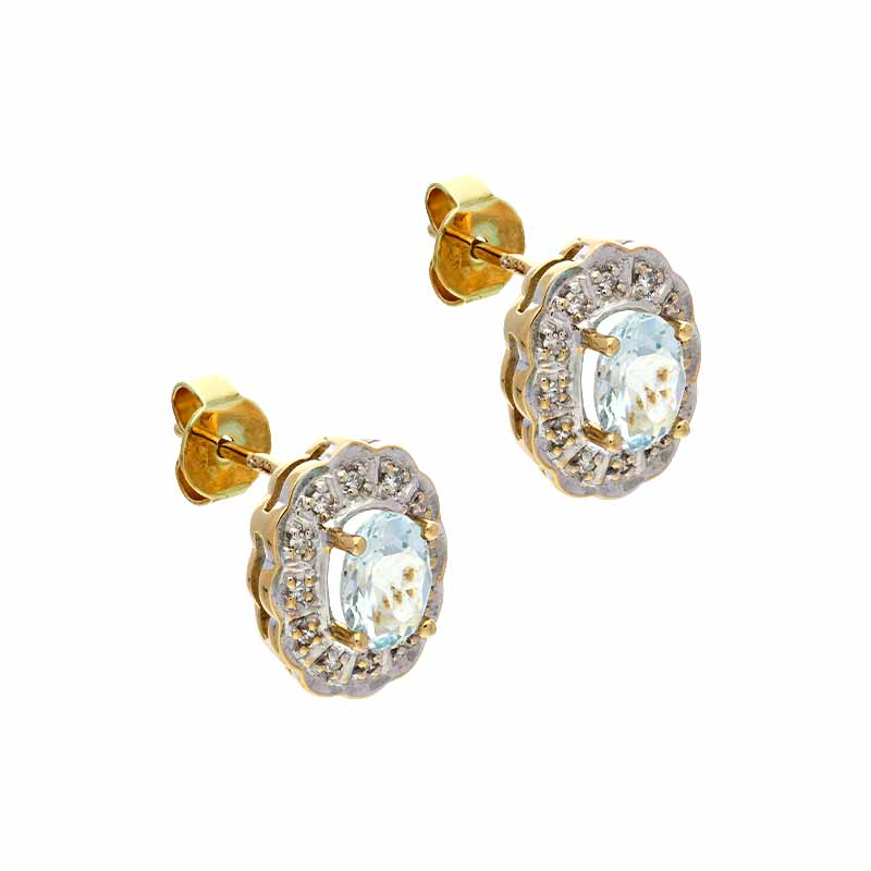 Zauberhafter Ohrstecker aus 585er Gelbgold, teil-rhodiniert mit Aquamarin und glitzernden Diamanten.