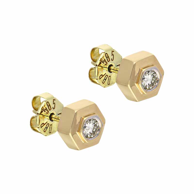 Brillant-Ohrstecker Gelbgold teil-rhodiniert