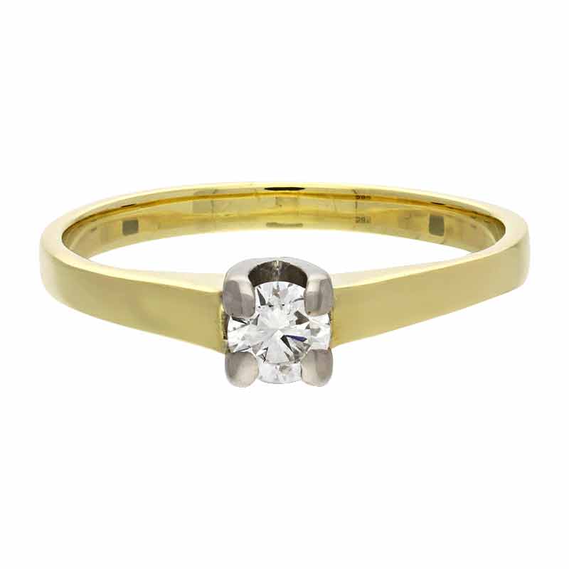 Großartiger Ring aus 585er Gelb- und Weißgold mit einem funkelnden Brillant.