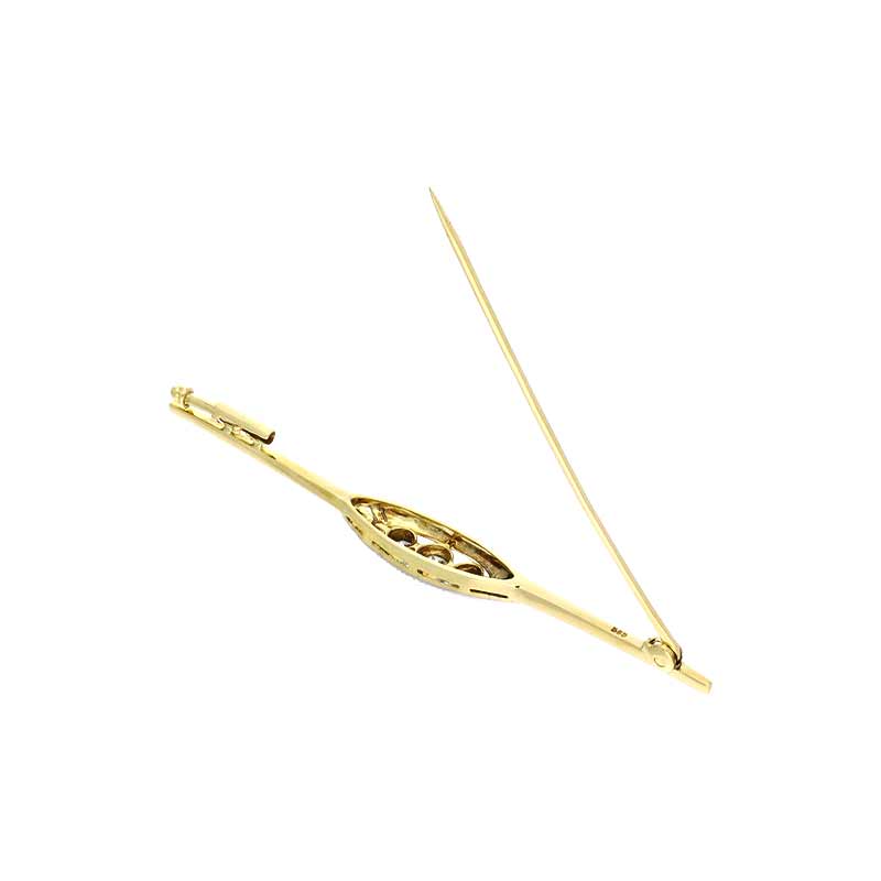 Bezaubernde Art Deco-Brosche aus 585er Gelbgold mit Platin-Auflage und glitzernden Diamanten.