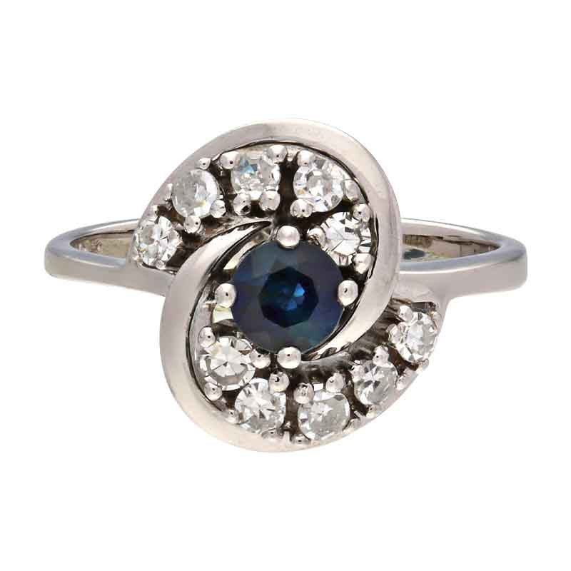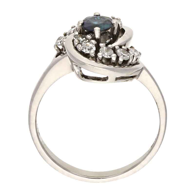Großartiger Ring aus 585er Weißgold mit einem Saphir und glitzernden Diamanten.