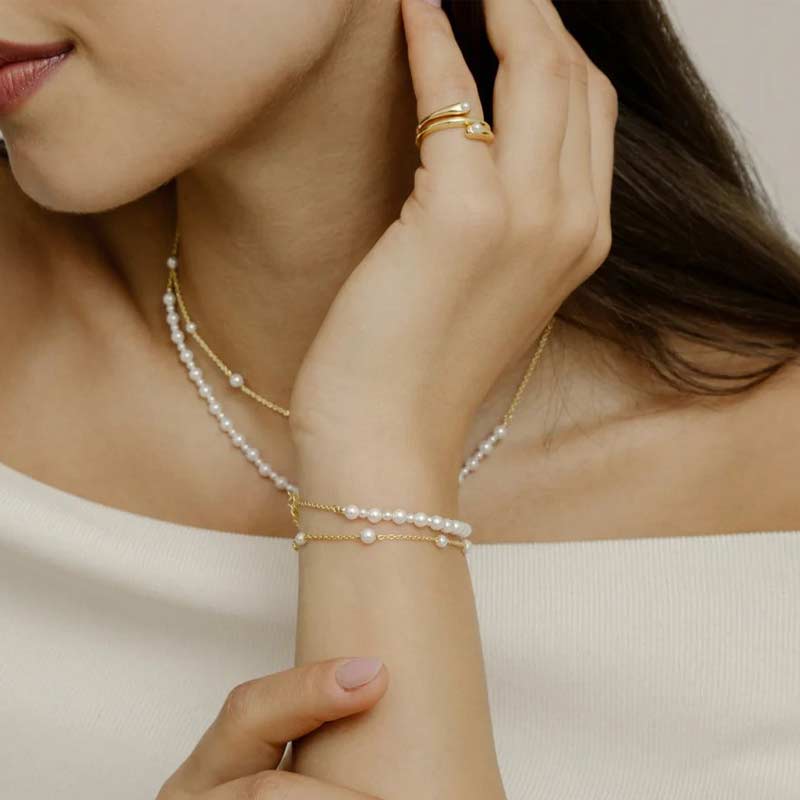 XENOX Perl-Armband Silber vergoldet