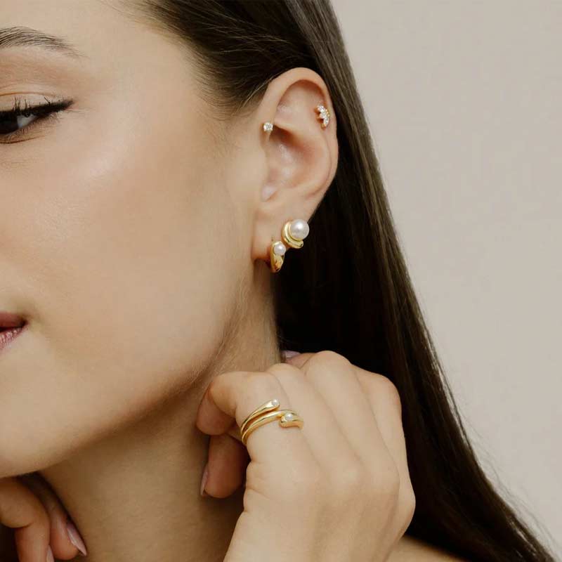 XENOX Perl-Ring Silber vergoldet