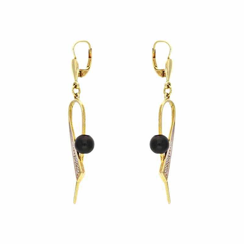 Onyx-Ohrhänger Gelbgold teil-rhodiniert