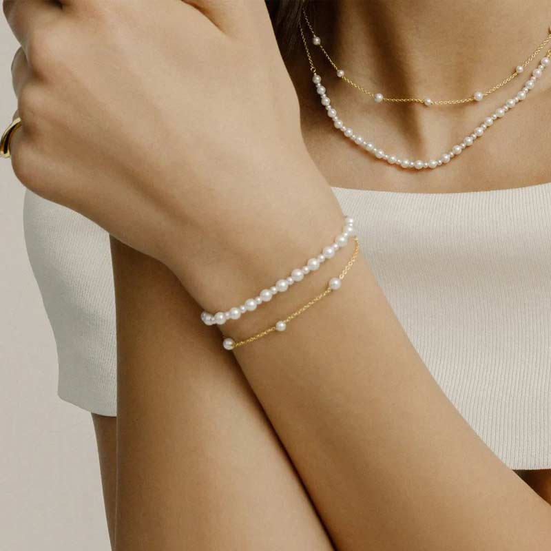 XENOX Perl-Armband Silber vergoldet