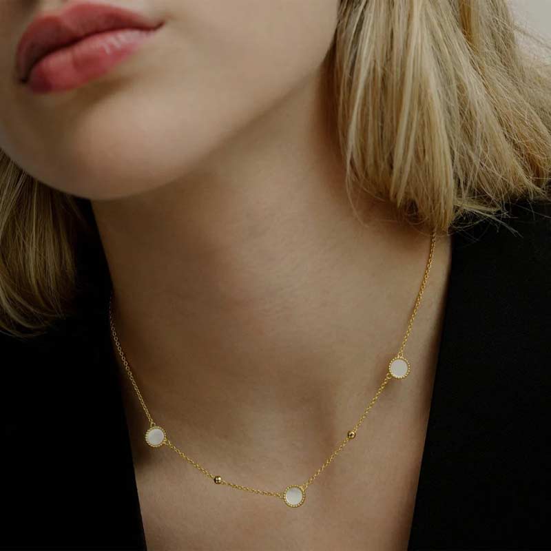 XENOX Perlmutt-Halskette Silber vergoldet