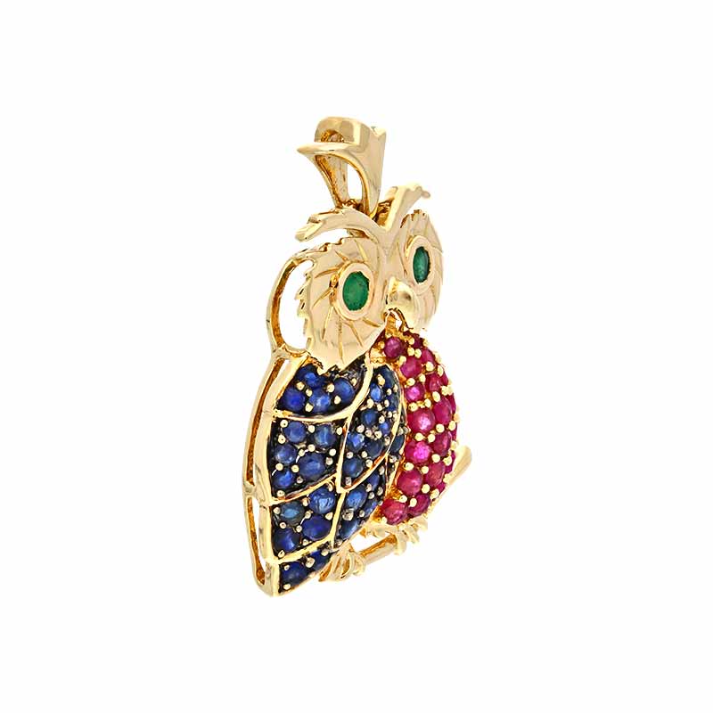 Farbstein-Anhänger 'Eule' Gelbgold