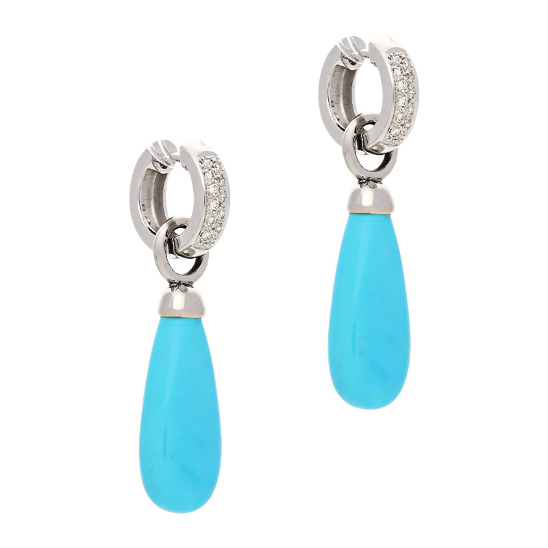 Ohrhänger in Weißgold mit Türkis und Brillanten