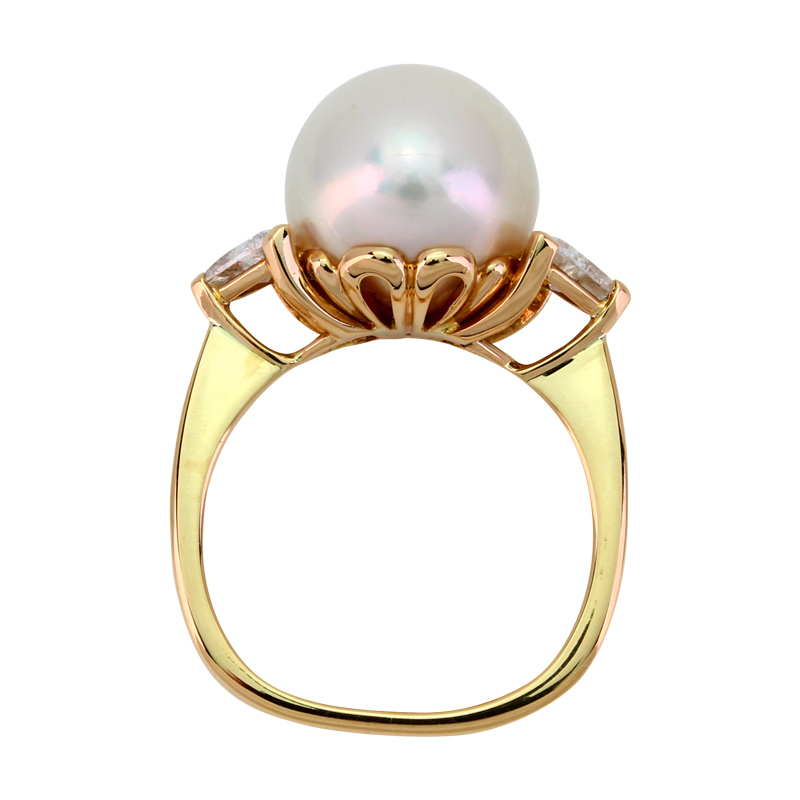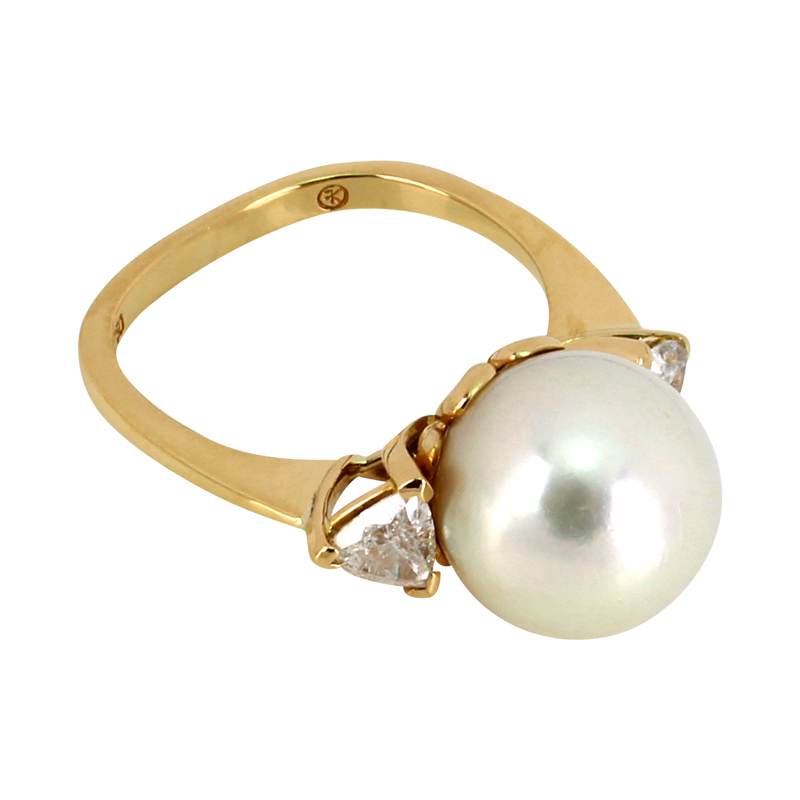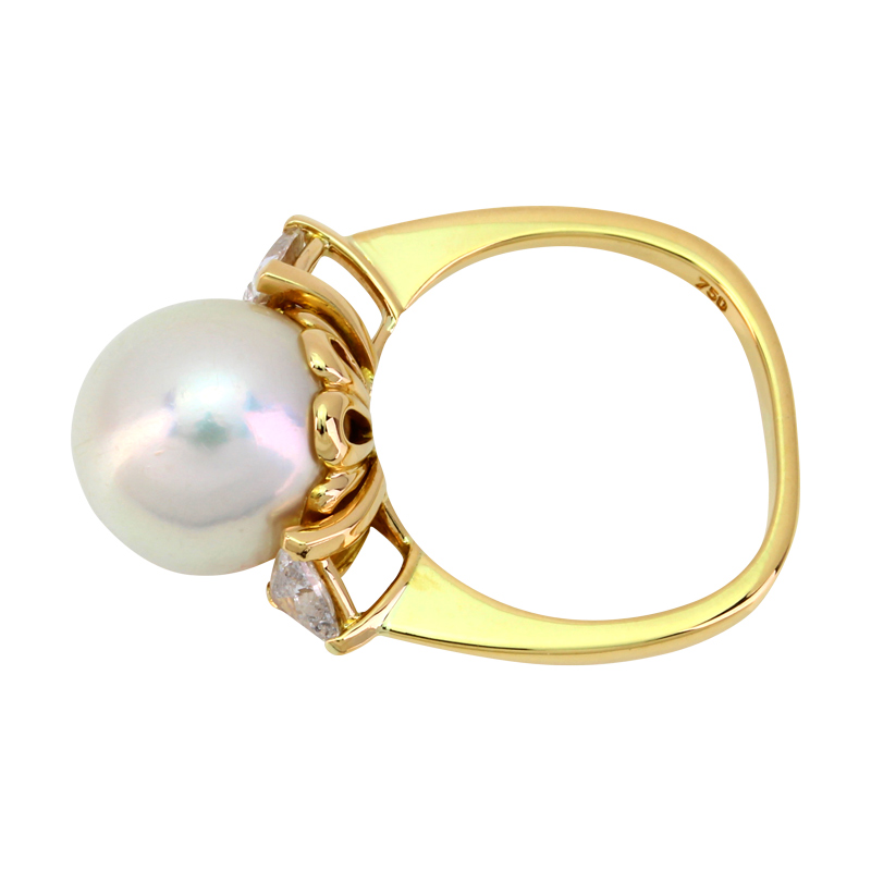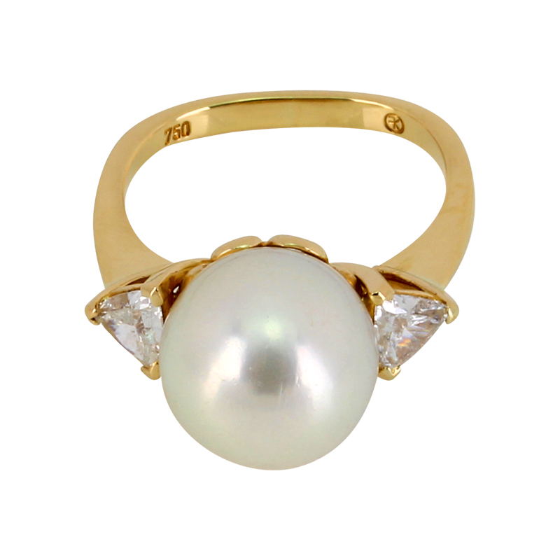 Ring in Gelbgold mit Zuchtperle und Diamanten