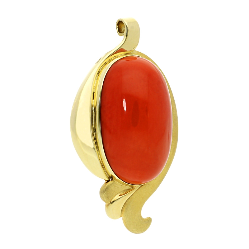 Extravaganter Anhänger aus 585er Gelbgold mit einer roten Koralle.